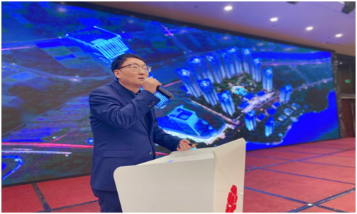 (晟通科技集團(tuán)有限公司副總裁譚振明介紹了項(xiàng)目品質(zhì)和產(chǎn)品)