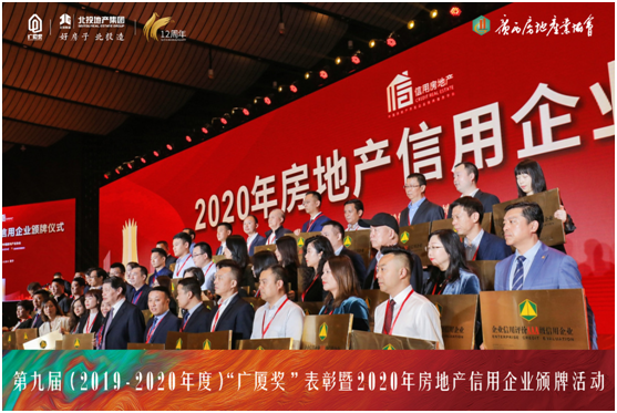 4月8日,在第九屆“廣廈獎”表彰暨2020年房地產(chǎn)信用企業(yè)頒牌活動中,中國房地產(chǎn)業(yè)協(xié)會首次發(fā)布《2020年中國房地產(chǎn)開發(fā)企業(yè)信用狀況白皮書》,并宣讀了《關(guān)于公布2020年房地產(chǎn)開發(fā)企業(yè)信用評價結(jié)果的決定》。