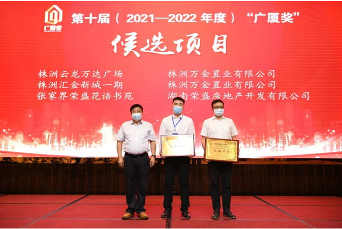 論壇現(xiàn)場,姚志宏為株洲萬金置業(yè)有限公司的“株洲云龍萬達廣場”“株洲匯金新城一期”項目、湖南榮盛房地產(chǎn)開發(fā)有限公司的“張家界榮盛花語書院”項目頒發(fā)了“廣廈獎候選項目”的牌匾。王惠敏和董少宇為在“廣廈獎”評選工作中做出貢獻的5位“廣廈獎”省級評審專家頒發(fā)聘書。