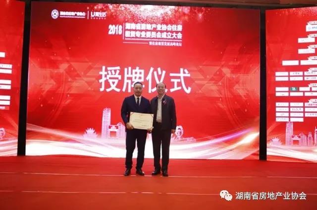 省住建廳負(fù)責(zé)人為湖南房地產(chǎn)協(xié)會(huì)住房租賃專業(yè)委員會(huì)主任單位——湖南寓生活公寓管理有限公司授牌。
