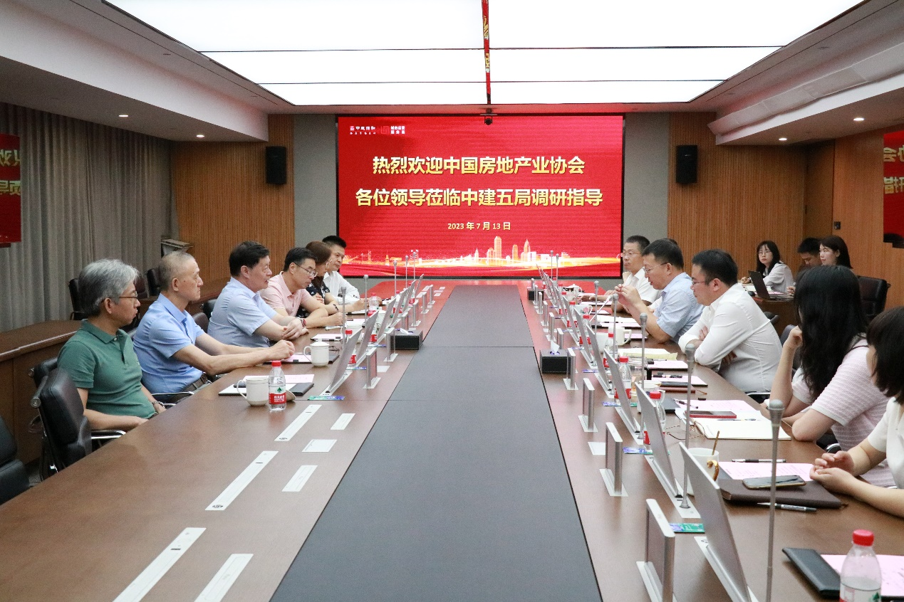 盧洪波對陳宜明一行的來訪表示熱烈歡迎,對中國房地產(chǎn)業(yè)協(xié)會長期以來給予的信任和支持表示感謝,并詳細介紹了中建五局、中建信和在發(fā)展歷程、業(yè)務(wù)范圍、發(fā)展方向等方面的情況。